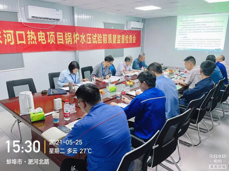 30日早上8点32分,锅炉升压至试验压力13.89MPa,稳压20分钟后泄压至工作压力11.11MPa,经蚌埠市特检院及各参建单位全面检查,确认锅炉承压部件无破裂、变形、漏水现象,并对试验结果进行了签证确认,水压试验一次成功。
